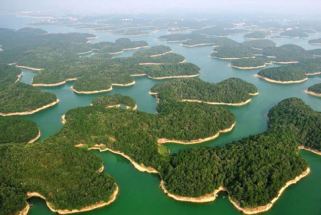 洈水水库属亚洲著名的人工淡水湖,洈水大坝全长8968米,属亚洲第一大人工型土坝。湖水浩淼碧澄,天水一色,500个湖心岛在水中崛起,使水面多处分割,几经收放,形成连续的风景区域,湖中有岛,岛中有湖,湖光山色尽在其中;500个半岛群峰毗连,层峦叠嶂,山水相依,可谓"山得水而活,水得山而媚"。有"楚南仙境千岛湖"之美誉。