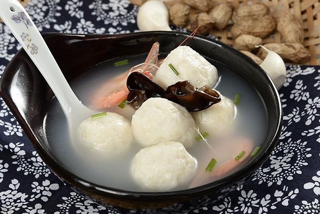 松滋漂丸,又名鱼丸子汤,为本市宴席上不可缺少的汤菜。先将鱼肉剔刺,合猪肉一起剁泥,盛大菜盆,放入猪油、鸡蛋清、生粉及佐料等,以手捏散拌匀后,放食盐加水适量,搅拌上劲至拍时发响,挤成的料丸滑亮,放入冷水中浮而不沉而得名“漂圆”。